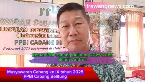 TANJUNGPANDAN: Benny Andrea kembali terpilih sebagai Ketua Perkumpulan Penggemar Bonsai Indonesia atau disingkat PPBI Cabang Belitung untuk periode 2025-2029 dalam sebuah acara Musyawarah Cabang kesembilan PPBI Belitung yang digelar di Hotel Pondok Impian, Tanjungpandan, Kabupaten Belitung, pada Minggu 16 Februari 2025.