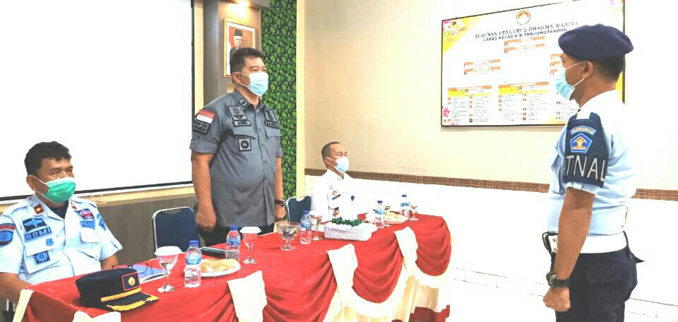TANJUNGPANDAN: Kepala Divisi Pemasyarakatan (Kadivpas) Kanwil Kemenkumham Babel Agus Irianto, Bc.IP, SH, M.Si melanjutkan Monev dengan Kegiatan Penguatan Tugas & Fungsi bagi jajaran petugas Lapas Kelas IIB Tanjungpandan Rabu (19/5/2021) bertempat di Aula Atas Lapas.