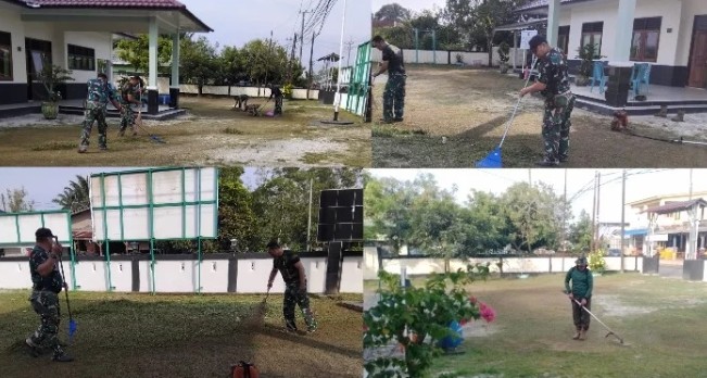 Pj Danramil bersama seluruh anggota tampak kompak membersihkan lingkungan satuan sebagai bentuk kepedulian terhadap kebersihan dan kesehatan lingkungan kerja. Kegiatan ini bertujuan untuk menciptakan suasana yang nyaman, aman, bersih, dan sehat, sehingga mendukung pelaksanaan tugas sehari-hari.