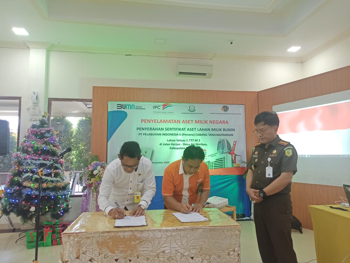 Adapun aset itu adalah milik PT Pelabuhan Indonesia (persero) II cabang Tanjungpandan, berupa lahan seluas 1.777 M2 diwilayah Desa Air Merbau Tanjungpandan.