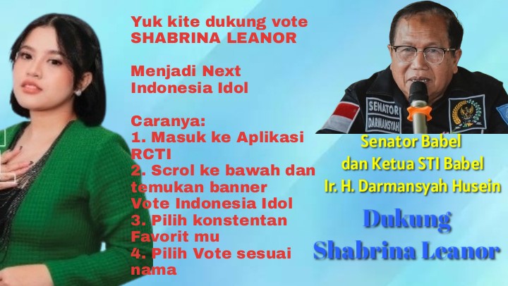 Ketua Senam Tera Indonesia (STI) Bangka Belitung sekaligus senator Babel, Ir. H. Darmansyah Husein, mengajak seluruh masyarakat Belitung dan Bangka Belitung untuk memberikan dukungan penuh bagi Shabrina agar dapat melaju ke babak selanjutnya dan meraih gelar juara.