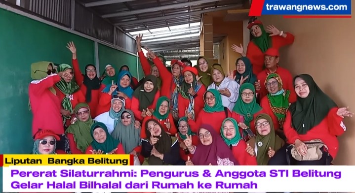 TANJUNGPANDAN: Suasana bulan Syawal terasa hangat di Desa Perawas, Tanjungpandan, Kabupaten Belitung, Minggu (5/4/2026). Keluarga besar Senam Tera Indonesia (STI) Belitung menggelar halal bihalal dengan konsep unik, yakni berkunjung dari rumah ke rumah anggota.