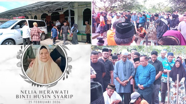 GANTUNG – Innalillahi wainna ilaihi rajiun. Langit pagi di Desa Gantung seakan turut berduka. Suasana haru keluarga dan lantunan doa mengiringi kepergian Ny. Nelia Herawati binti Husein Syarip, yang akrab disapa Mak Nel, yang berpulang ke rahmatullah pada Rabu, 25 Februari 2026, di sebuah rumah sakit di Jakarta setelah beberapa waktu berjuang melawan sakit.