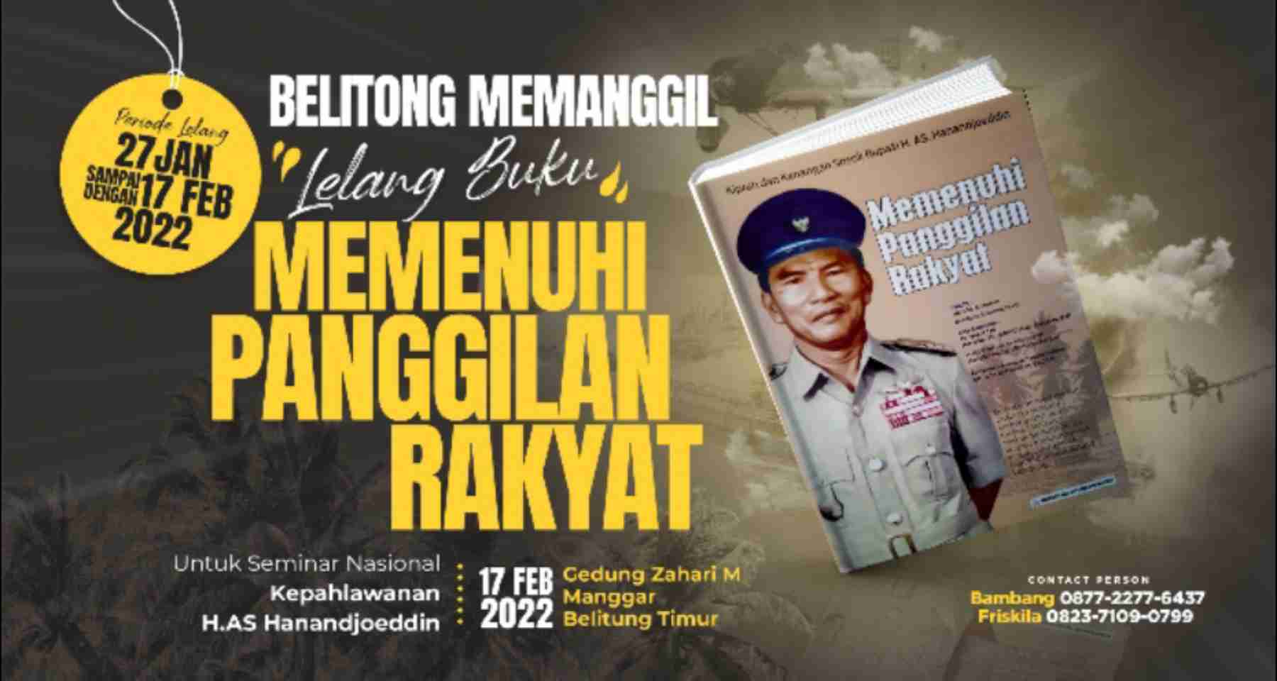 Seperti diketahui, Tim Peneliti dan Pengkaji Gelar Daerah (TP2 GD) Kabupaten Beltim sebagai penyelenggara seminar Nasional kepahlawanan HAS Hanandjoeddin, dengan ini mengajak masyarakat pulau Belitung, Bangka Belitung, baik yang bermukim di daerah maupun diperantauan untuk berpartisipasi langsung mendukung proses pengusulan pahlawan nasional dengan mengikuti lelang buku “Memenuhi panggilan rakyat, kiprah dan kenangan sosok Bupati HAS Hanandjoeddin”.