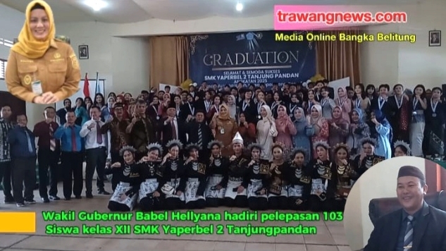 TANJUNGPANDAN: Momen penuh haru dan semangat terasa hangat di Gedung Nasional Tanjungpandan Selasa 6 mei 2025, saat 103 siswa kelas XII SMK Yaperbel 2 Tanjungpandan secara resmi dilepas menuju gerbang masa depan. Acara ini semakin istimewa dengan kehadiran Wakil Gubernur Kepulauan Bangka Belitung, Hellyana, S.H., yang turut memberikan motivasi kepada para lulusan.